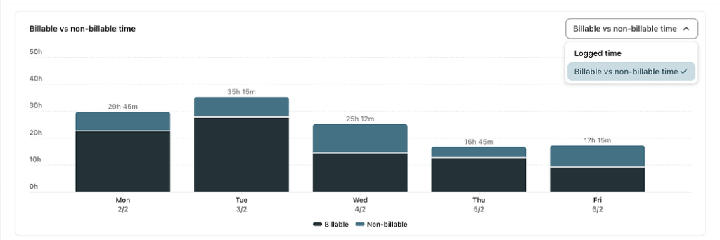 From there, there’s no need to send time data elsewhere to start getting paid. Simply dive into your time reports to gain a clear view of your total billable and non-billable records.