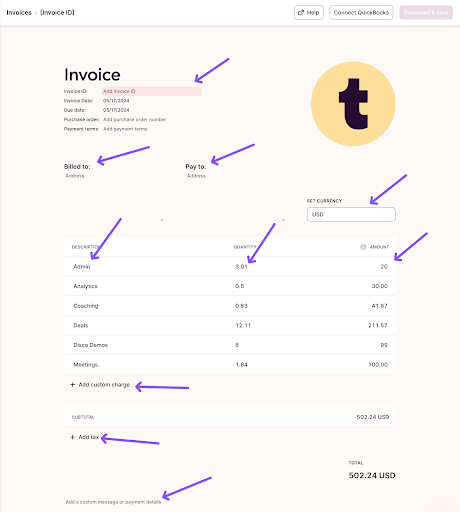 When you need to generate an invoice, all the variables you need are pre-populated to create an invoice that’s ready to send to your clients straight away.
