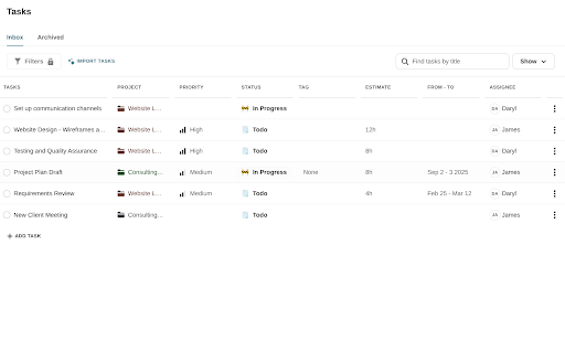Productive has all the end-to-end features you’d need for tracking deliverables, time, and inviting clients for collaboration, with a slick and simple user interface that maintains a consult-level of professionalism.
