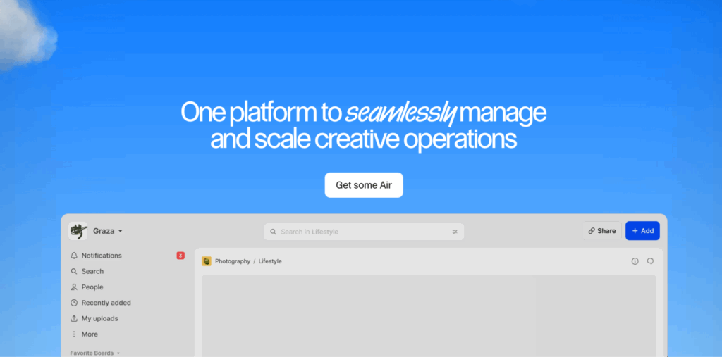 Teams drowning in creative assets may want to grab some Air. It’s a new creative asset management platform to store, categorize, sort through, and share all deliverables and WIP assets.