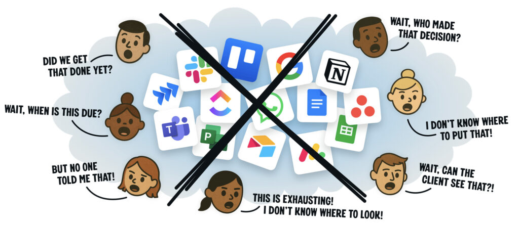 - Limited storage and integrations. Free tiers often cap file storage and restrict integrations with other apps. As a result, you’re stuck copy-pasting between tools or juggling shared drives just to keep work moving.
