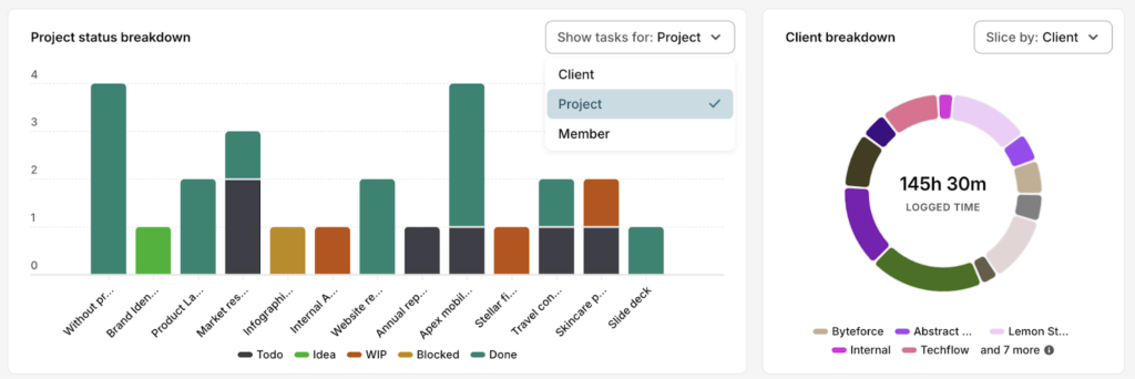 A free plan provides access to customizable reports that break down time by client, project, team member, or tag. You’ll answer questions like: where is the time going this week? Which clients consume the most effort? Which types of work consistently take longer than expected?