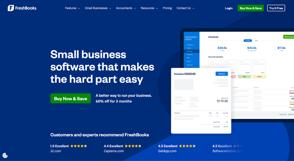 | FreshBooks | Teams with accounting-heavy workflows | 30-day trial | $9.20/mo | Full accounting suite (expenses, tax reports, payments) Stronger financial admin layer |