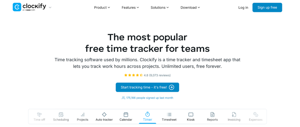| Clockify | Budget-friendly time tracking | Free plan + trial | $3.99/user/mo | Unlimited tracking for free More time tracking features (GPS, kiosk, reminders) |