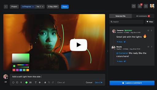 - Drawing on media enables faster feedback on images, PDFs, and video files, saving heaps of time on typing out where to look for a problem.