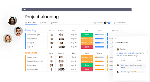 Built-in Gantt chart and Calendar views provide a high-level view of team members’ workload. You can assign tasks, manage project statuses, and manage due dates across private, team, and collaborative workspaces.