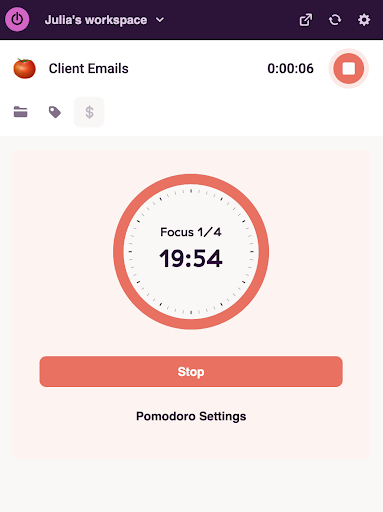 When each block arrives, you start Toggl Track’s Pomodoro timer and focus on nothing else for 25 minutes. After three or four cycles, you’re through most of the toughest work, and feel relieved and in control of your week.