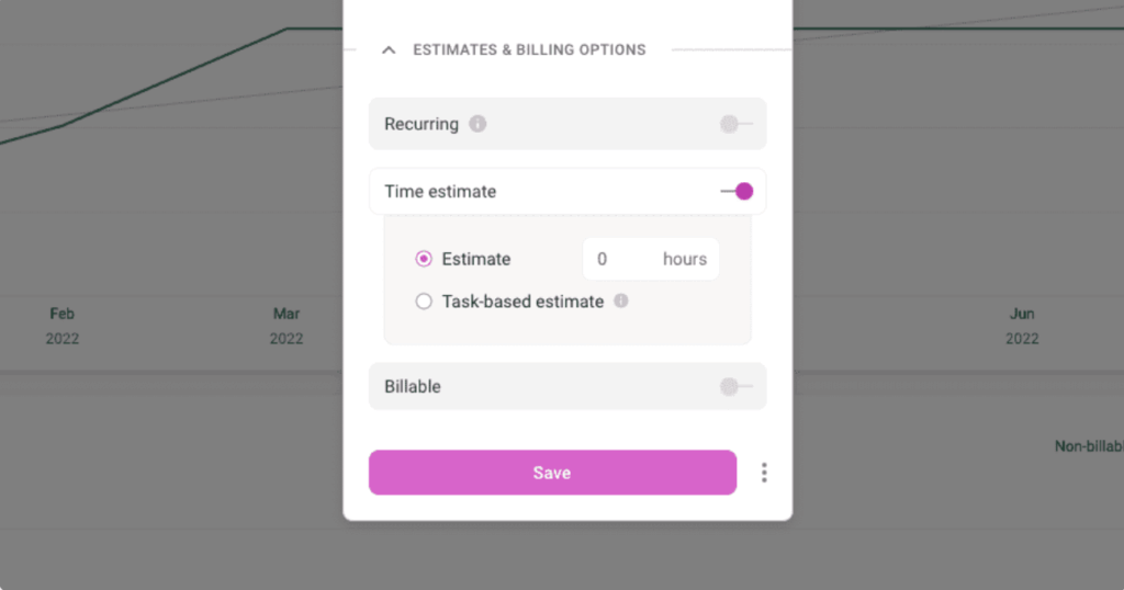 Set custom time estimates for your projects and tasks inside Toggl Track, then monitor actual time spent vs. estimates.