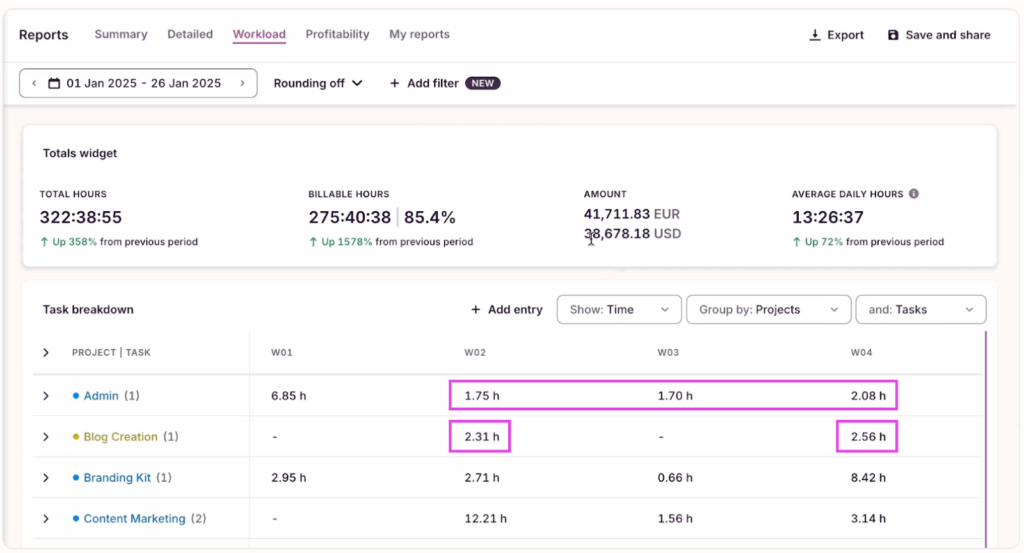 Toggl Track builds that consistency by showing you exactly where your time is going, how your estimates compare to reality, and where your highest-value work lives so you can do more of it, and less of the rest.