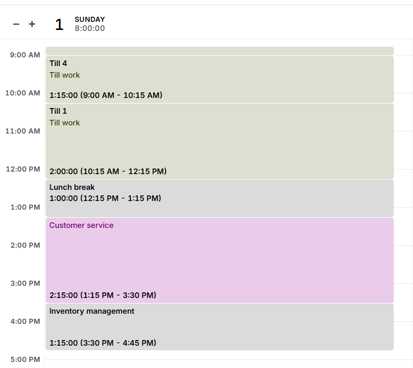 - Scheduling goes hand in hand with retail timekeeping. When shifts and timesheets live in the same place, managers can spot discrepancies immediately, like a staff member who clocked in an hour before their shift started, without cross-referencing two separate tools.