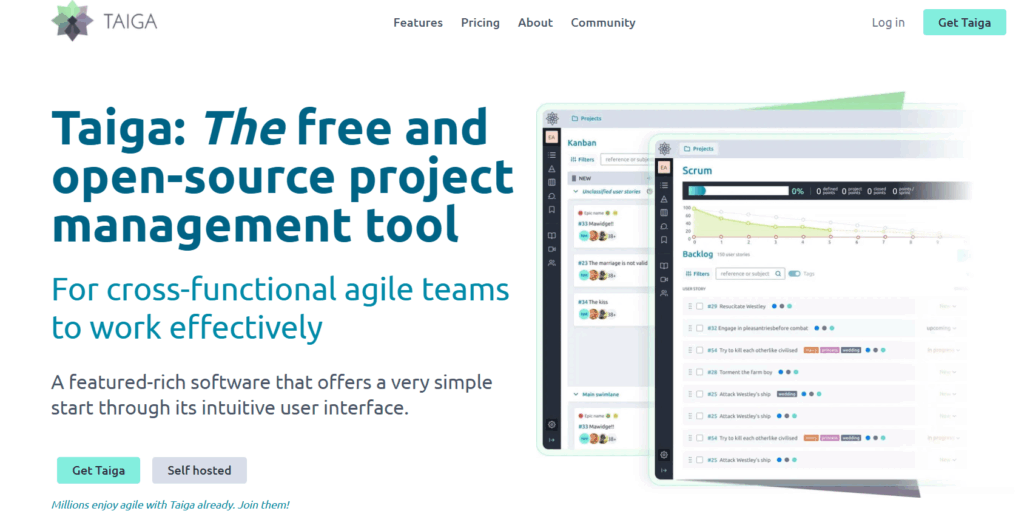 - Start using Taiga for free