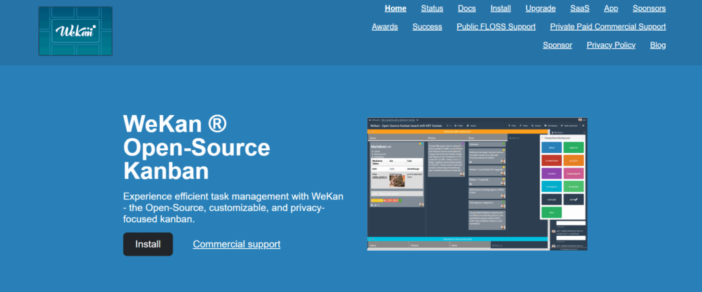 | WeKan | Privacy-focused teams | No | Yes | €50/yr for hosting |
