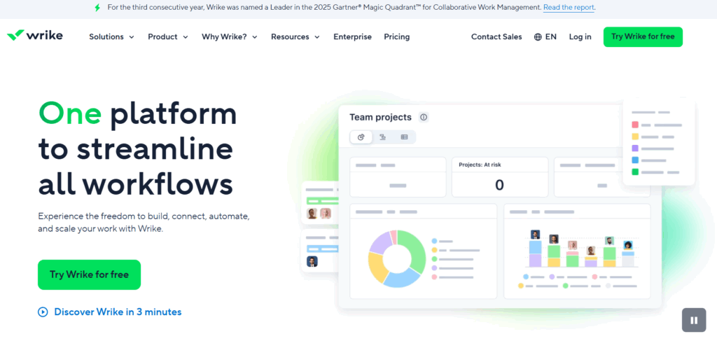 | Wrike | Enterprise teams with complex dependencies | Yes | $10 per user/mo |