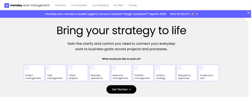 monday work management is a work and project management platform (built on the monday.com Work OS) that combines visual planning with workload and resource views. It helps teams see assignments across projects, track capacity, and adjust work in real time, which is especially useful for teams that prioritize visual planning, dashboards, and cross-project portfolio oversight.