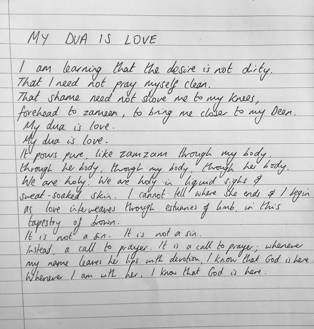 Outside of her PhD, Ahsan is in the process of developing a community space for queer, Muslim women with Other Box, an organization advocating for diversity in the creative industries. Her goal is to create the kind of community she lacked in her adolescent years and help others overcome the toxic narratives generated by the experience of being 'different'.