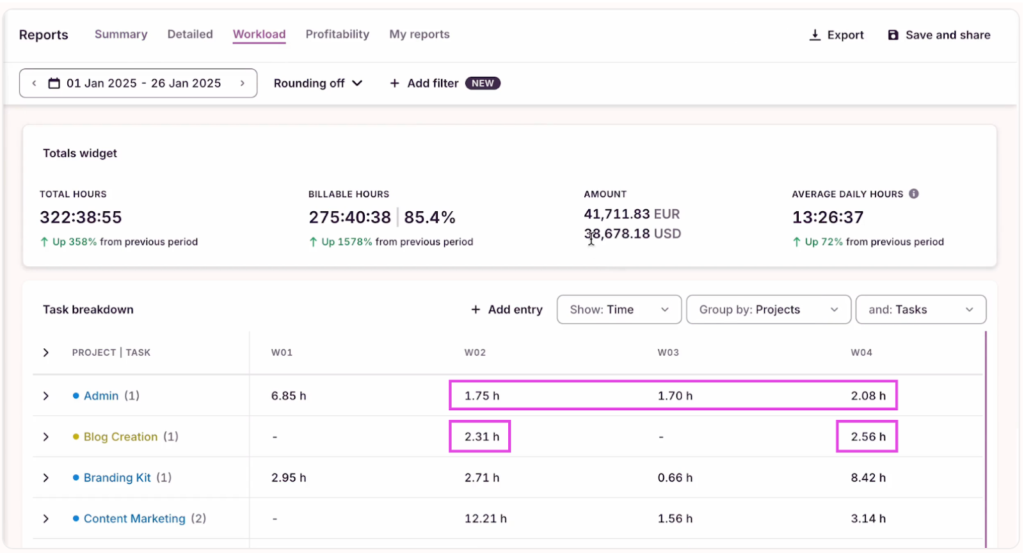 - Trust your time data to prioritize tasks. Toggl Track’s reports show you exactly how your hours are distributed across projects and clients — making it easy to spot where high-effort work doesn’t match high-value output.