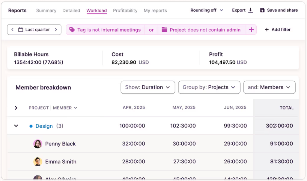 Compare it alongside revenue with Profitability reports, to keep your margins high and put your effort into your highest-value work.